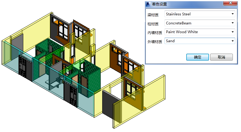 可以对梁、柱外包面及墙的内外面进行颜色的设定。