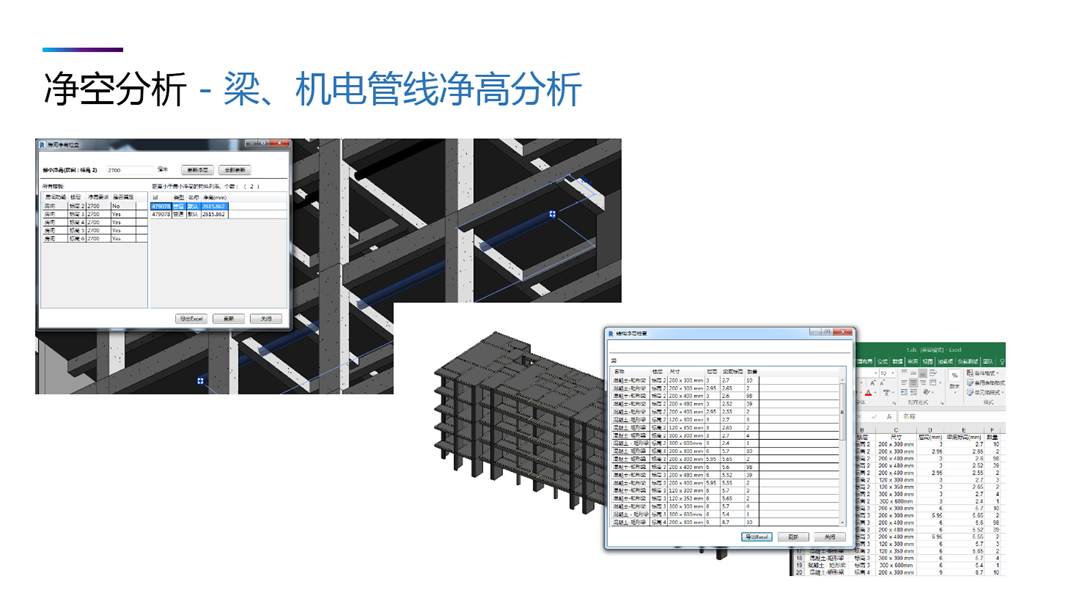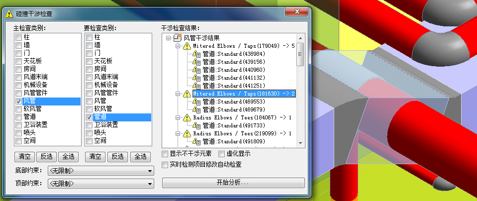 能够按指定标高进行指定类别图元之间的干涉检查,对于干涉结果可以进行高亮显示。