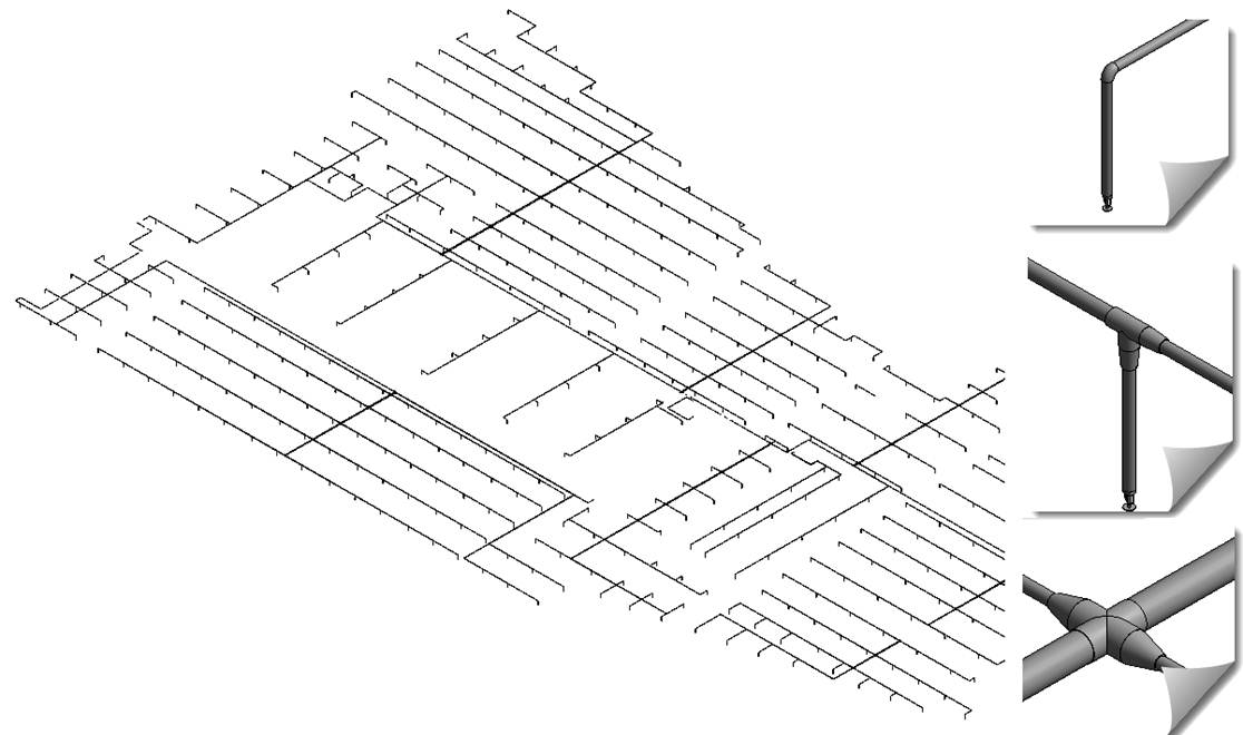 Ø 管线自动连接:该功能根据用户选择的管线数目,自动进行两通、三通、四通的创建,创建后同时保持系统的完整性。