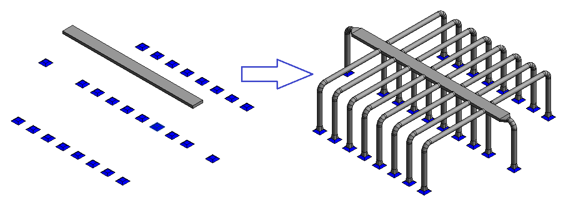 可以实现各类管线支吊架的点选或批量放置,放置时自动判断管线的类型并使用默认的支吊架类型;同时,放置后的支吊架会随着管线的变动而改动,实现了支吊架与管线的联动的整体性。