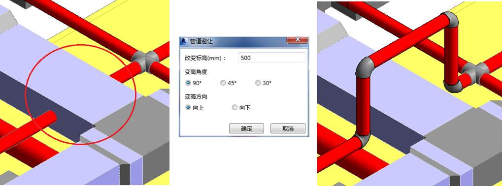 提供了管线的多种避让方式,对管线自动进行断开和避让
