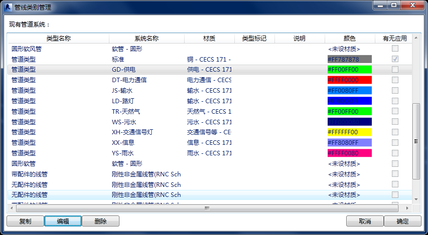 可以快速对项目中的各类管线类型进行管理,能实现管线的类型复制、材质等设定。