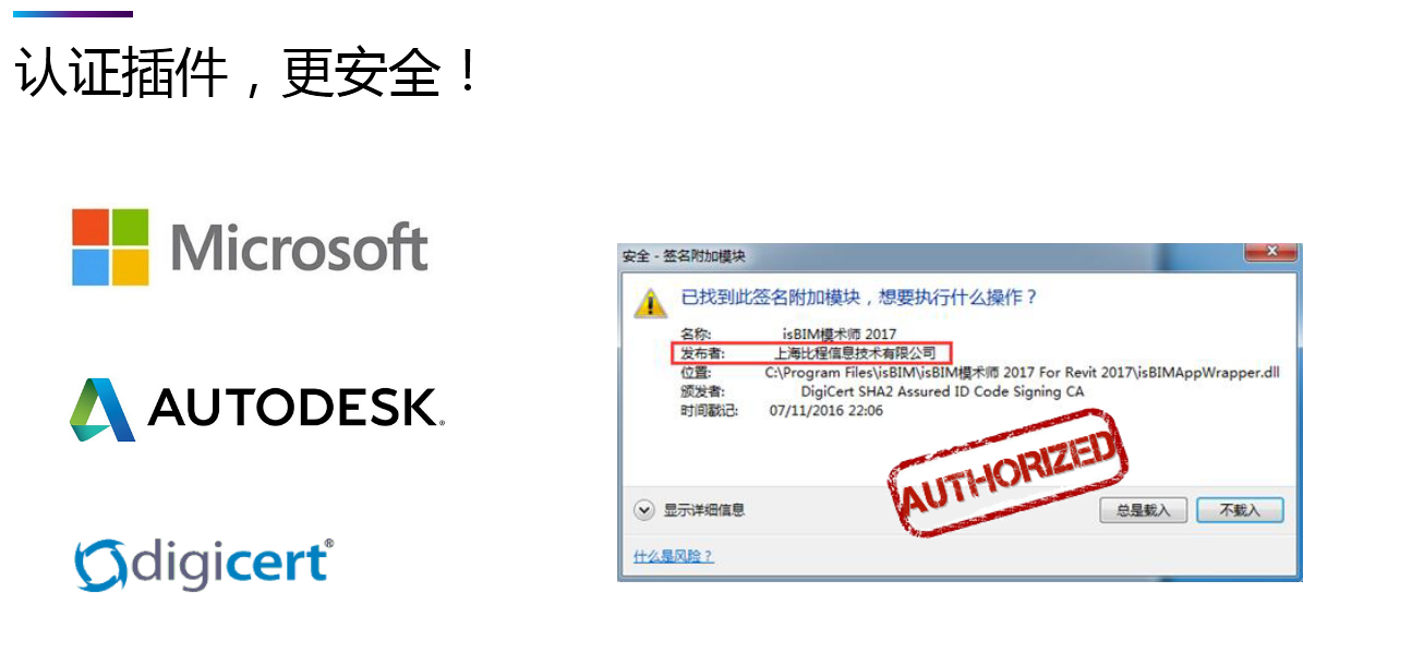 《isBIM模术师》完美支持Revit 2014、2015、2016、2017; 并通过微软、欧特克、digicert认证。