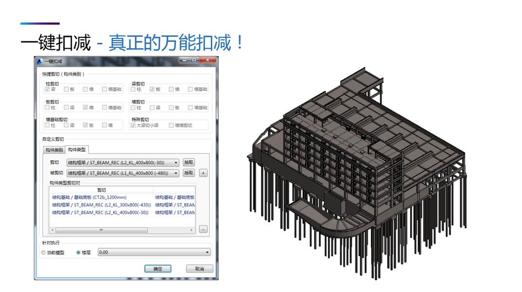 该工具可以快速对模型中的墙、柱、梁、板之间的剪切进行修改,可以任意指定剪切的主从关系,实现模型的快速修改。