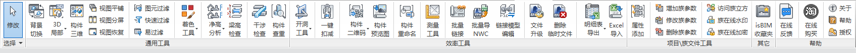 《isBIM模术师》是由上海比程信息技术有限公司,在2015年8月隆重推出的基于Autodesk Revit软件基础之上的本地化功能插件集;该插件扩展和增强了Revit的建模、修改等功能,可用于建筑、结构、水电暖通、装饰装修等专业中,极大地提高了用户创建模型的效率,同时提高了建模的精度和标准化;《isBIM模术师》可以帮助用户建立一个涵盖产品定位、产品设计、招标采购、施工管理、项目销售、交付验收、客户使用、运营维护全过程的专业、准确的BIM模型数据库。