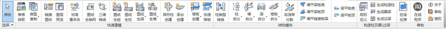模术师主要功能由通用、土建、装饰装修、机电、出图等五大模块、180多个功能构成: